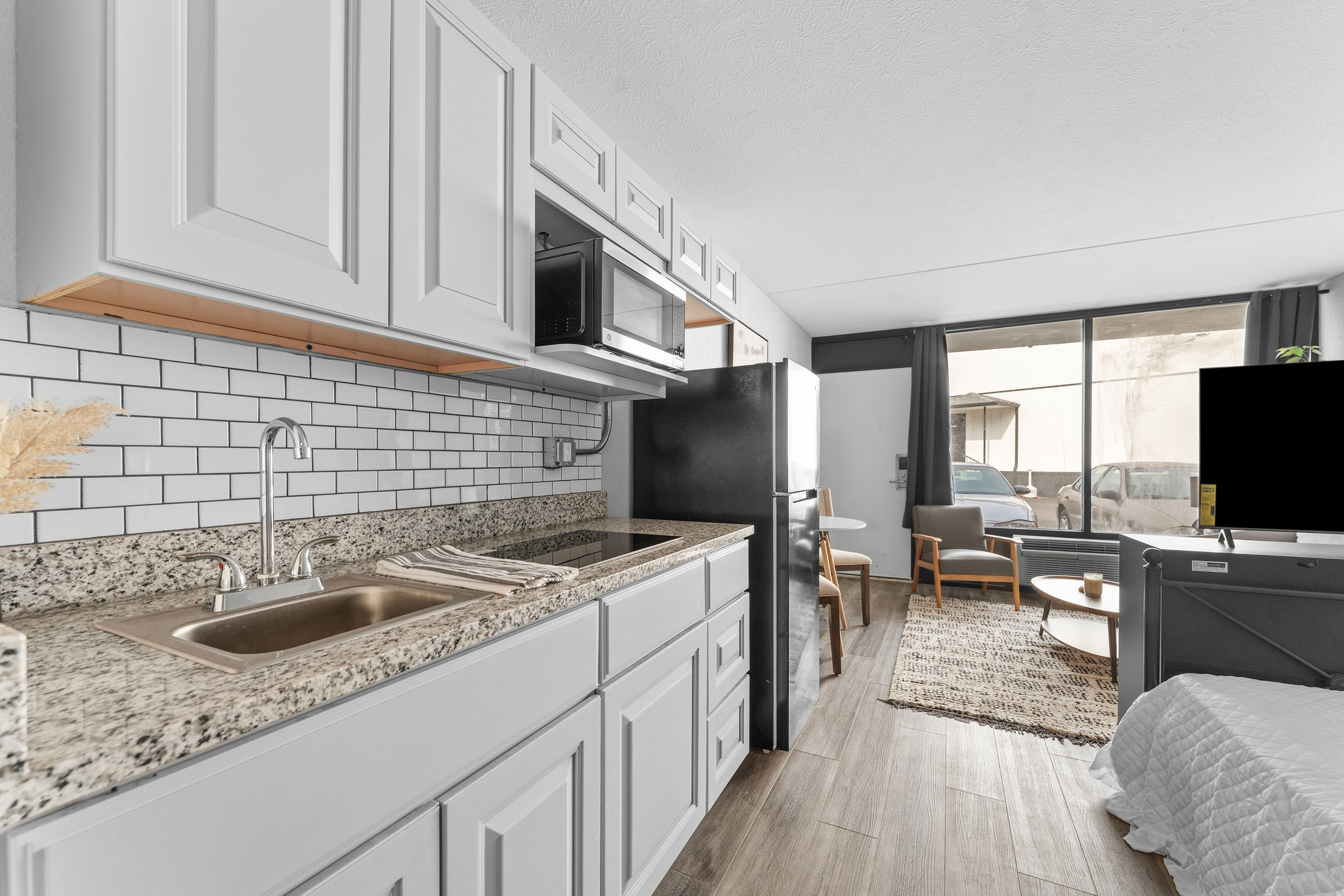 Take a closer look at our thoughtfully designed studio apartments. Each unit is equipped with modern amenities and comfortable finishes to make your space feel like home.